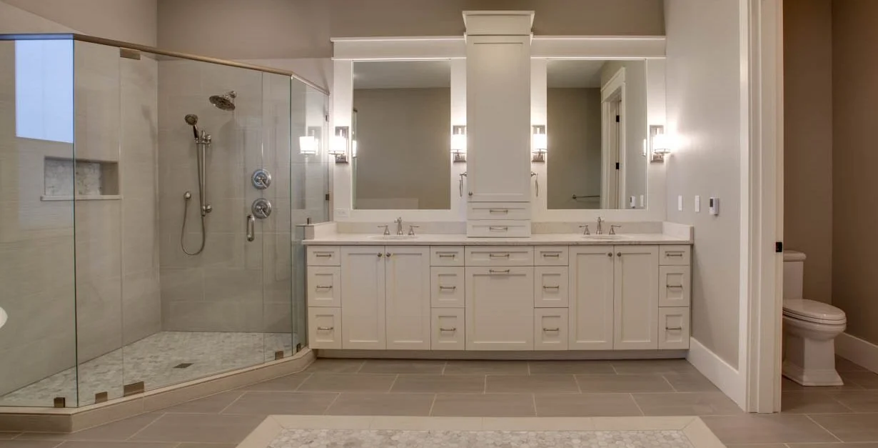 Neo angle showers are often found in the corners of very small bathrooms when there’s a sink on one side, toilet on the other, and the only place to put a door is in the cut-off corner of the shower. That may be the typical application, but it’s not the only reason to incorporate a neo angle shower in your bathroom design.